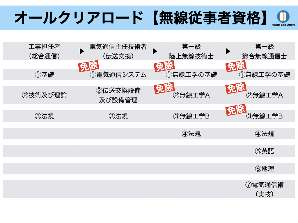 無線資格のオールクリアには「第一級陸上無線技術士」「第一級総合無線通信士」を取得すればいいんだね。